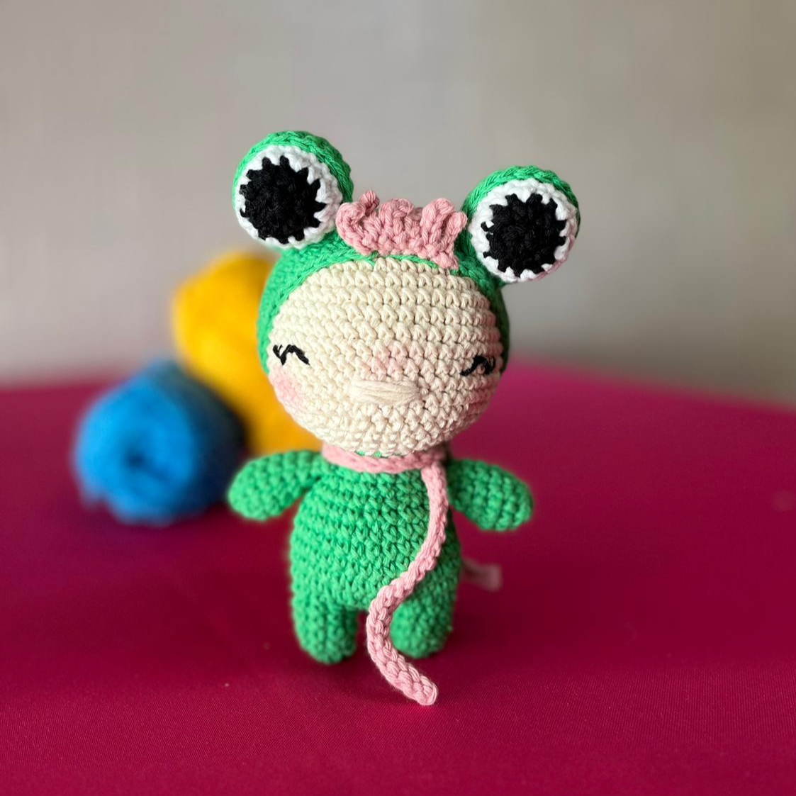 De 11 a 15 cm. Elaborado a mano en crochet, con hilo de algodón.